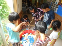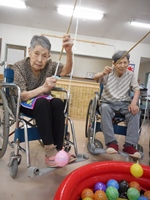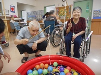ヨーヨー釣りは 入居者様も子ども達も とても上手につれました。