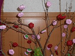 笠懸の玄関に一つ一つ手作りの紅梅が咲いています。