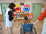 鬼のパネルに豆の代わりに玉入れの玉を使い、点数をつけ入居者様、職員で競いあいました。