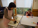 1月生まれ3名の誕生会を行いました。色紙で作った誕生日カードと誕生日プレゼント、豪華なケーキにローソクの火を点け、入居者様一人一人に吹き消していただきました。豪華なケーキは、スタッフが作った食品サンプルで食べられませんので、改めてロールケーキにトッピングを施し、誕生日ケーキを作り入居者者様に召し上がって頂きました。2月の誕生日ケーキはどんな感じでしょうか…….?次回をお楽しみに!