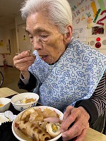 ホールには出汁の良い香りが立ち込め、ご入居者様は席につく前から「今日は何が入っているかな?」「楽しみだね」と、笑顔で会話が弾んでいました。大根、玉子、ちくわ、こんにゃくなど、定番の具材はもちろん、皆様のお好みに合わせて数種類をご用意。スタッフが熱々のお鍋から取り分け、出来立てを召し上がっていただきました。『味が深く染みていて、本当に美味しい」「久しぶりにこんなに本格的なおでんを食べたよ』といった嬉しいお言葉をたくさんいただき、おかわりをされる方も多くいらっしゃいました。寒い日でしたが、心も体もポカポカと温まる、賑やかな昼食となりました。