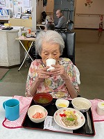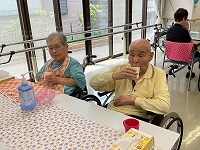 本日は釜めしレクリエーションを実施し、昼食に皆さまで釜めしをいただきました。具だくさんで風味豊かな釜めしは、「味が少し薄めだったけど、素材の味が活きていて美味しかった」といった感想もあり、皆さまゆっくりと味わいながら召し上がっておられました。ノンアルコールビールやジュースと一緒に楽しんでいただき、特別感のある昼食となりました。また、おやつの時間にはカラオケ大会も開催いたしました。お腹も満たされたあとのカラオケでは、懐かしい昭和歌謡や思い出の一曲などを披露され、自然と手拍子や笑い声が広がる和やかな雰囲気となりました。普段はあまり歌われない方が照れながらマイクを持たれる場面もあり、周囲から温かな声援が送られておりました。食事と音楽の両方を楽しんでいただけた一日となり、皆さまにとって心身ともにリフレッシュいただけたご様子でした。今後も、日々の楽しみとなるようなレクリエーションを企画してまいりますので、どうぞご期待ください。