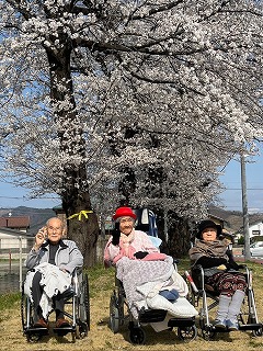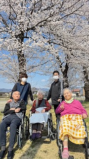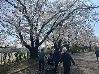 本日は皆さまと一緒に花見に出かけてきました。心地よい春の日差しの中、満開の桜を眺めながらの散策はとても気持ちよく、皆さま穏やかな表情で季節の風景を楽しまれていました。ただ、桜の美しさよりも「お団子があればもっと良かったね」との声も多く聞かれましたので、次回はぜひお団子を持参して、さらに楽しい花見を企画したいと思います。春らしいひとときを皆さまと共有できた、素敵な一日でした。