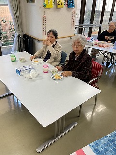 普段と違うおやつは皆様喜んで召し上がりおしるこはおかわり