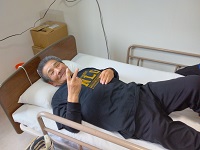 入居者様のお部屋では、訪問マッサージの先生による施術が行われていました。