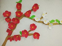 Ⅱ番館でも入居者様に梅の花を作成して頂きました。