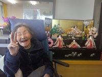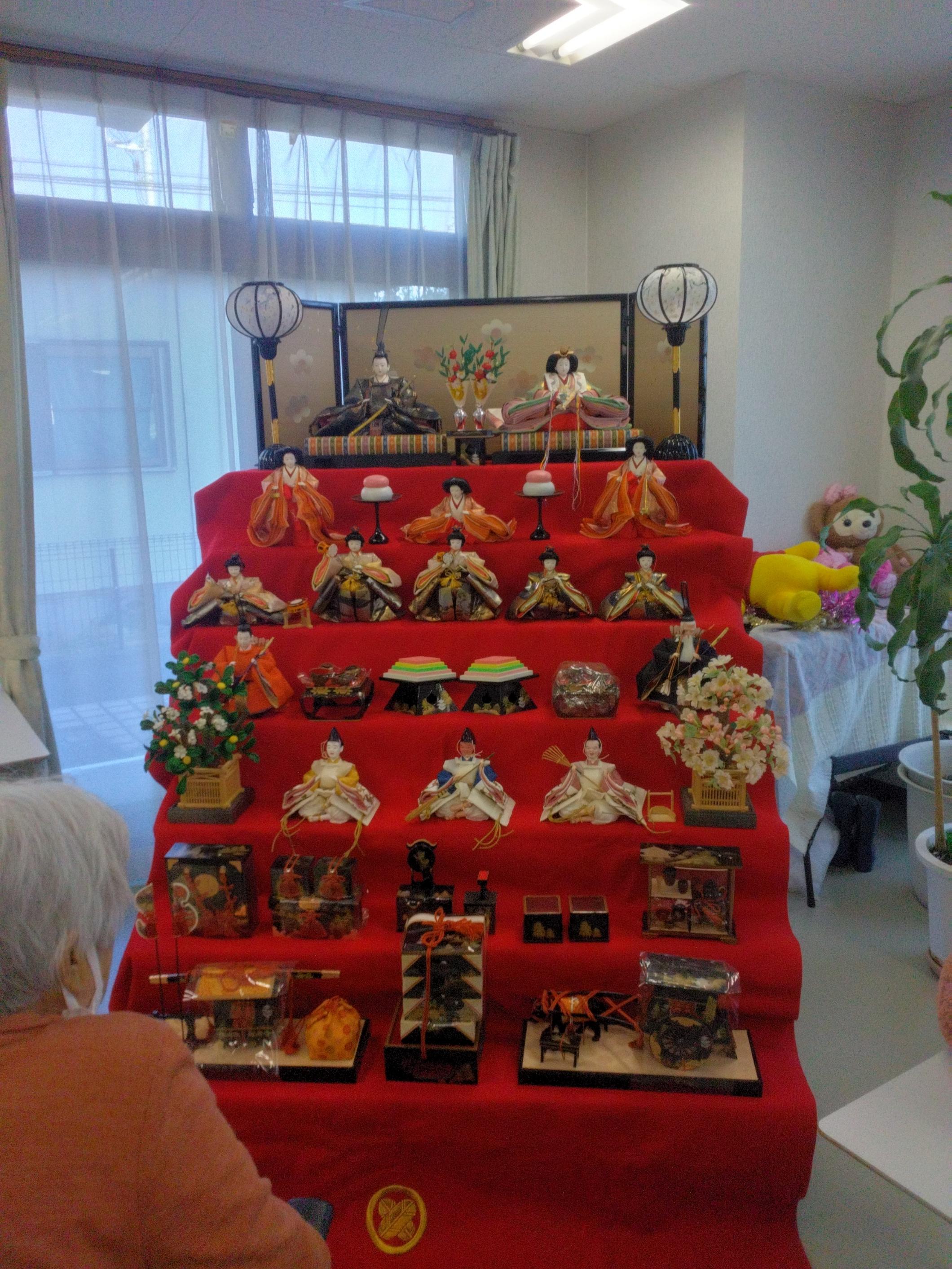毎年にはなりますが施設にもひな人形を出して飾りました