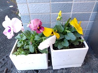 この暖かさですが、冬の定番ビオラとパンジーを植え付けました。