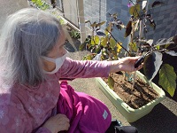 おやつを食べた後はお散歩したいという事で施設外の家庭菜園まで♬