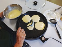 ご入居者様にも手伝っていただき、みんなでホットケーキを作りました。