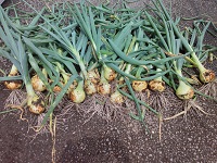 昨年の秋に植えた玉ねぎが収穫期を迎えました。