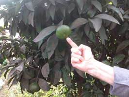 早速外に出てみると、隣の庭木にミカンの実を発見!