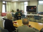 お昼ご飯の前には、DVDをつけてホールで集まっている利用者様たちと口腔体操を行っております。