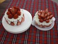 入居者様のお誕生会では、スタッフ数人と一緒に