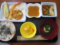 昼食は、敬老の日メニューで栗ご飯や天ぷらの盛り合わせ