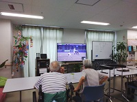 ちょうどお昼の時間と重なり、ホールではスタッフも交え応援合戦が始まりました。