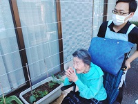 天気や気温がなかなか安定しないこの頃ですが、利用者様が手塩にかけて育てたコスモスが二輪開花しました。