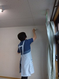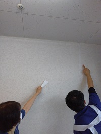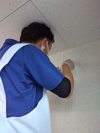 今日は日曜大工の得意なスタッフが廊下の壁を補修しました。