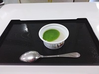 先日のこどもの日をお祝いして、おやつにかしわもち風のプリンを頂きました。