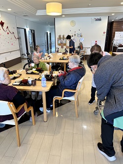 前日は手作りの様子を自慢させて頂きましたが(笑)本日はその後のランチタイム でも残念なお知らせも。夢中になっていたあまり撮影を失念。私はこの失念という言葉よく使います。そういうことが多い人物になるのかと思いますが少し前、上司に聞き飽きたと言われこれはまずいと今思っています。。習慣をかえねばならないですね!意気込みはあります。 本題にもどりますがレク委員のリーダーさんからこの日のメニューはサンドイッチとかれーうどんと聞いた時「・・・なぜ?」と思い聞き直しました。理由は入居者様に伺ったところリクエストがあったとのことでした。栄養士さんとよく話し込みしてくれているなと感じることが多くうどんの替え玉、カレーのおかわりなどもできるようになっていました。毎回この準備に時間かけてくれていること、感謝 写真が少ないから長文になったわけではございませんがここのところHPに携われていなかったせいですがとあるご家族様より「最近アップされてないよ」とご意見をいただいたこともありやはり丁寧に仕事をしていかなければと思いました。こんな感じでゆるいですがまたアップしてまいります。※笑顔だったのに撮影がへたくそでした。おかわりたくさんありがとうございました。
