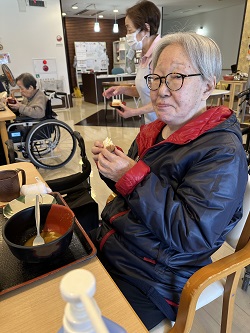 今月誕生日を迎えられたご利用者様のご家族からプレゼントが届き、大変喜ばれていた入居者様。いつまでも、笑顔が続くことを頭に浮かべながら、仕事を楽しんでいきたいと考えています。