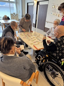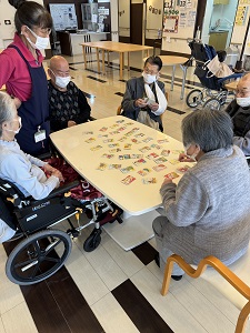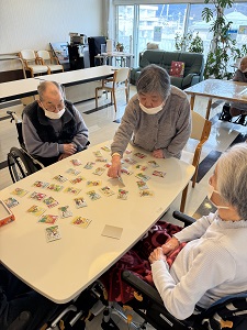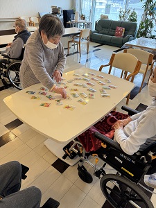今回は少し時間が空いている間の数回ですが、集まれる利用者様とカルタを行いました。