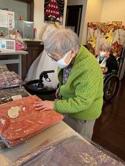 お世話になっているふじやさんが来てくれました(*’▽’) Ⅲ番館では女性入居者様が多くいらっしゃるため女性もの多くお願いしました。サイズも豊富Sから揃っているので大変助かります。あれやこれやと広げていい?といつもと違う表情を見せてくださいました。また色々仕入れてきますとふじやさん。こちらこそどうぞよろしくお願いいたします~!