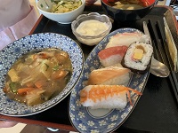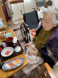 本日、本年最後のランチは寿司パーティでした。おかわり自由!やはり一番人気は「まぐろ」でした。他刺身が苦手なかたには八宝菜などがでていました。それはそれでおいしそうな、、そして夕飯は年越しそば。食べられない方にもお出汁を味わっていただこうと思います(*’▽’) 尚、今日のおやつはお茶のみとし、夕飯におそばを堪能してもらう流れとなっております。また本日もたくさんのご家族様が見えました。最後となりますが施設を代表して、今年も大変お世話様になりました。よいお年をお過ごしください。
