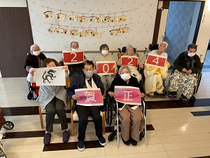 2024が明けました。本年も引き続きよろしくお願い申し上げます。夜勤スタッフが撮影してくれた初日の出と2階入居者様の協力による賀正写真をアップさせて頂きます。