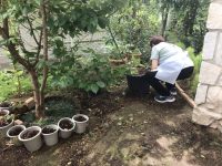 施設玄関前の花壇も例外ではなく、定期的に職員が時間を見て草むしりを行っています。