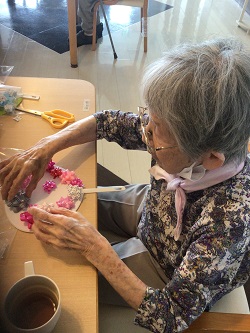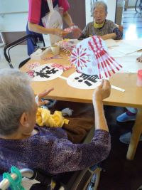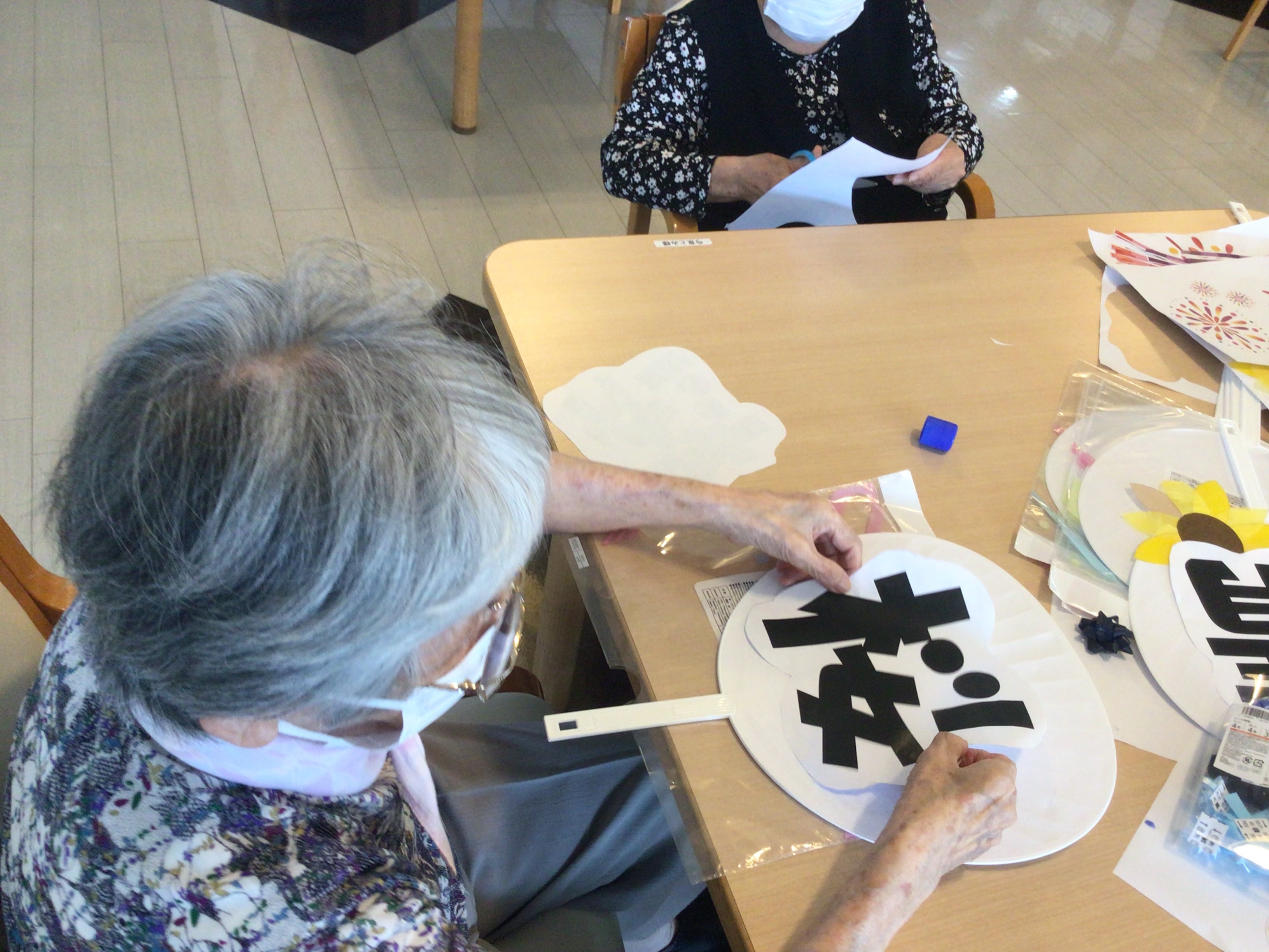 飾りつけも入居者様同士で話し合って決めているようで、なかなかカラフルなうちわが出来上がってます♪