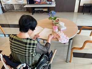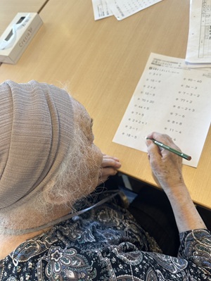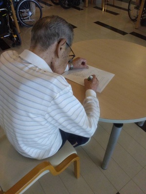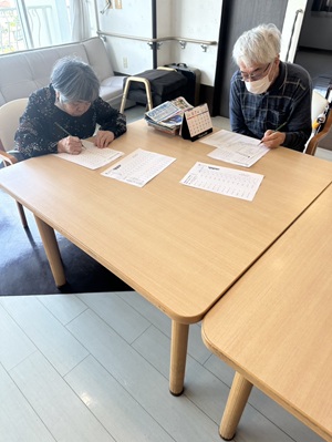 本日は3階のレクの様子。プリントにかれこれ30分ほど集中。前回の2階と同様県庁所在地、漢字、計算、点つなぎ。BGMは唱歌や童謡を。