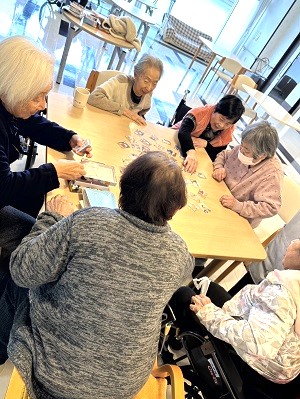 鬼のお面を被って、福を呼び込みました♪ その後は、皆さんおなじみの「両毛カルタ」を楽しみ笑い声が聞こえています。