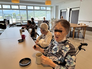おやつの時間になるとホールへ出てきてくださる方もいらっしゃいますが、お部屋へお届けしたり、ホールに来てもら為のお声かけをさせて頂くことがあります。