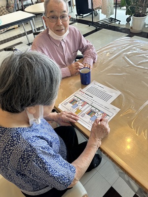 算数、漢字の間違い探しに真剣な表情をごらんください。30分近くプリント問題とむきあっておられました。いい時間でございました。