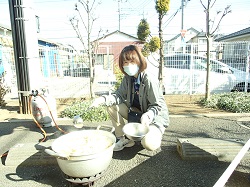 ふと、玄関前を見ていたスタッフが「あっ!タヌキだ!」と・・