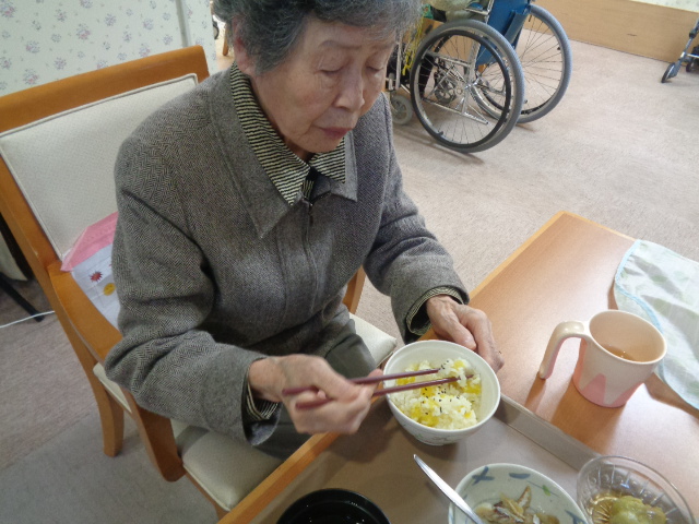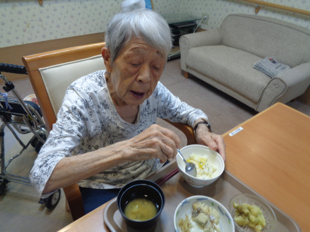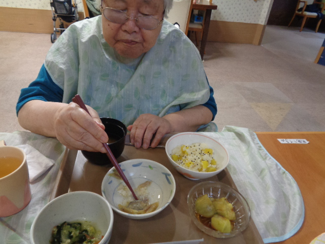 本日のお昼はさつまいもご飯でした😄