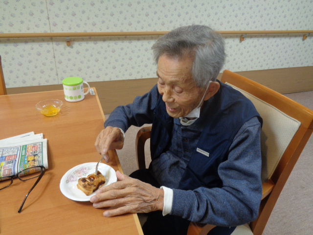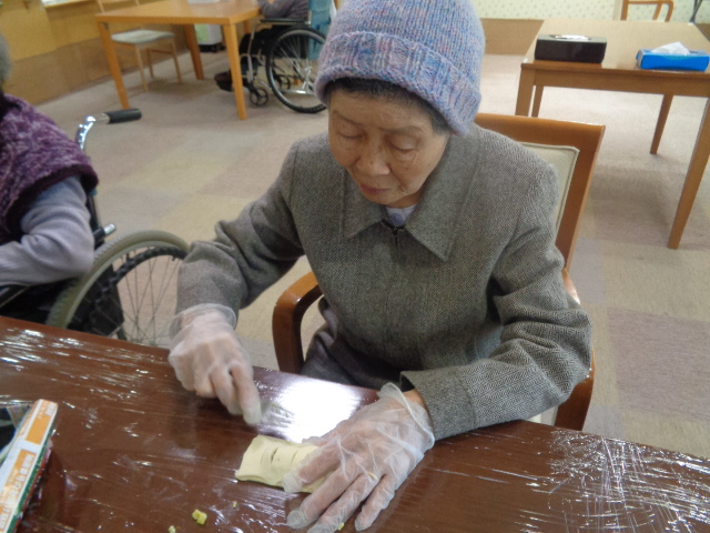 入居者様と一緒にかぼちゃとさつまいもの餡で