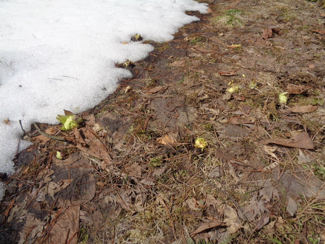 雪が溶け、ふきのとうがいくつも顔を出しています。