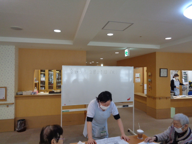 計算問題を解いたりしながらの思い出話も楽しみな時間です。