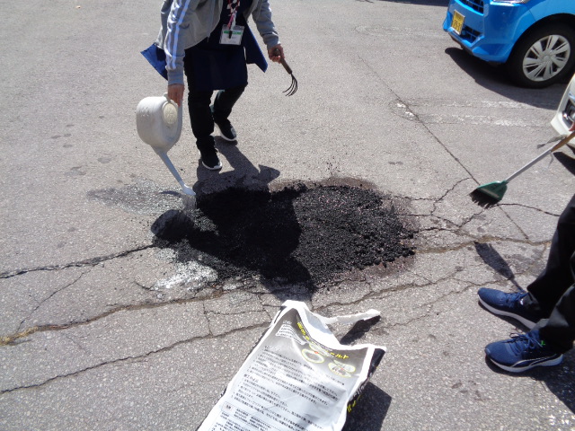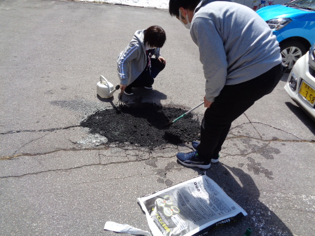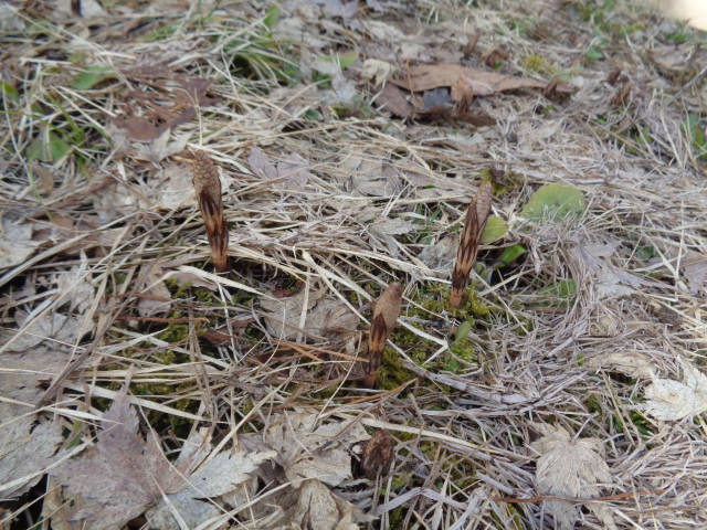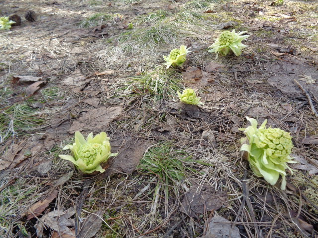 施設の裏庭の雪が融け、ふきのとうやつくしが