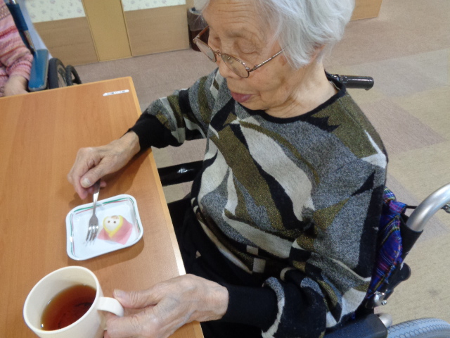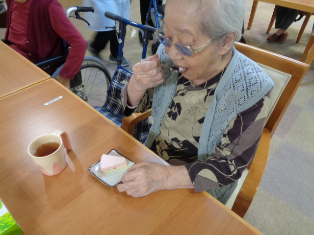 おやつにはあまおう苺ムースケーキを頂きました(^^)