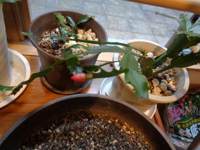 施設内で挿し木で育ったシャコバサボテンがまたまた蕾を持ちました(^^)/
