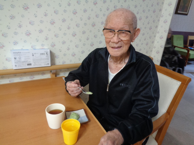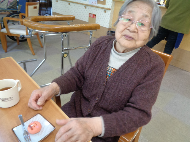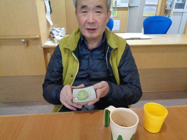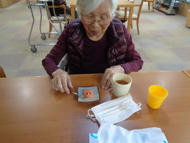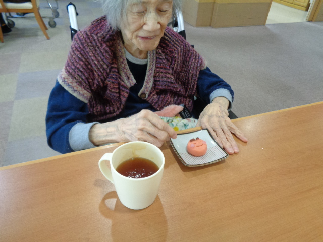 本日のおやつは鬼のお面和菓子をご用意させて頂きました(*^_^*)