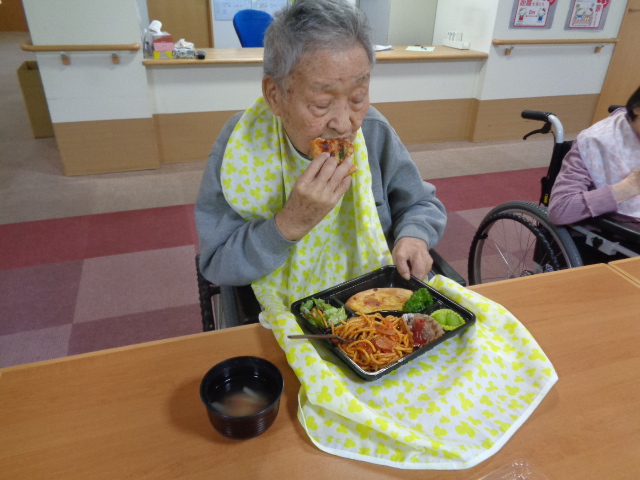 パスタ・ピザ・一口ハンバーグ・サラダ・シャインマスカット