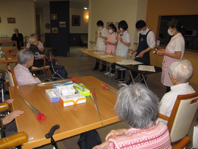 メディス草津ではカーネーションとスタッフによるハンドベル演奏をプレゼントさせていただきました🔔