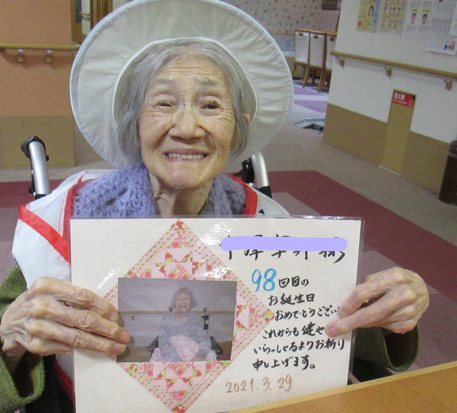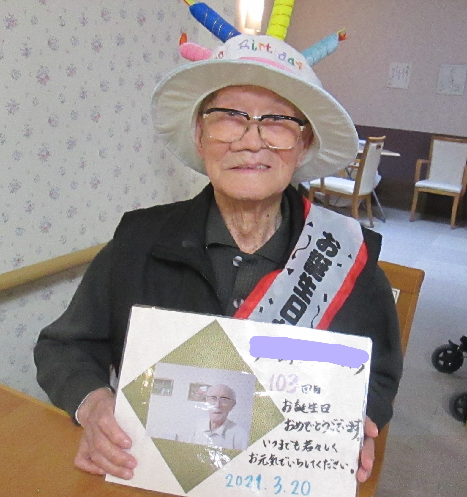 昨日のお誕生日会では入居者様全員でお祝いをしました(^^♪