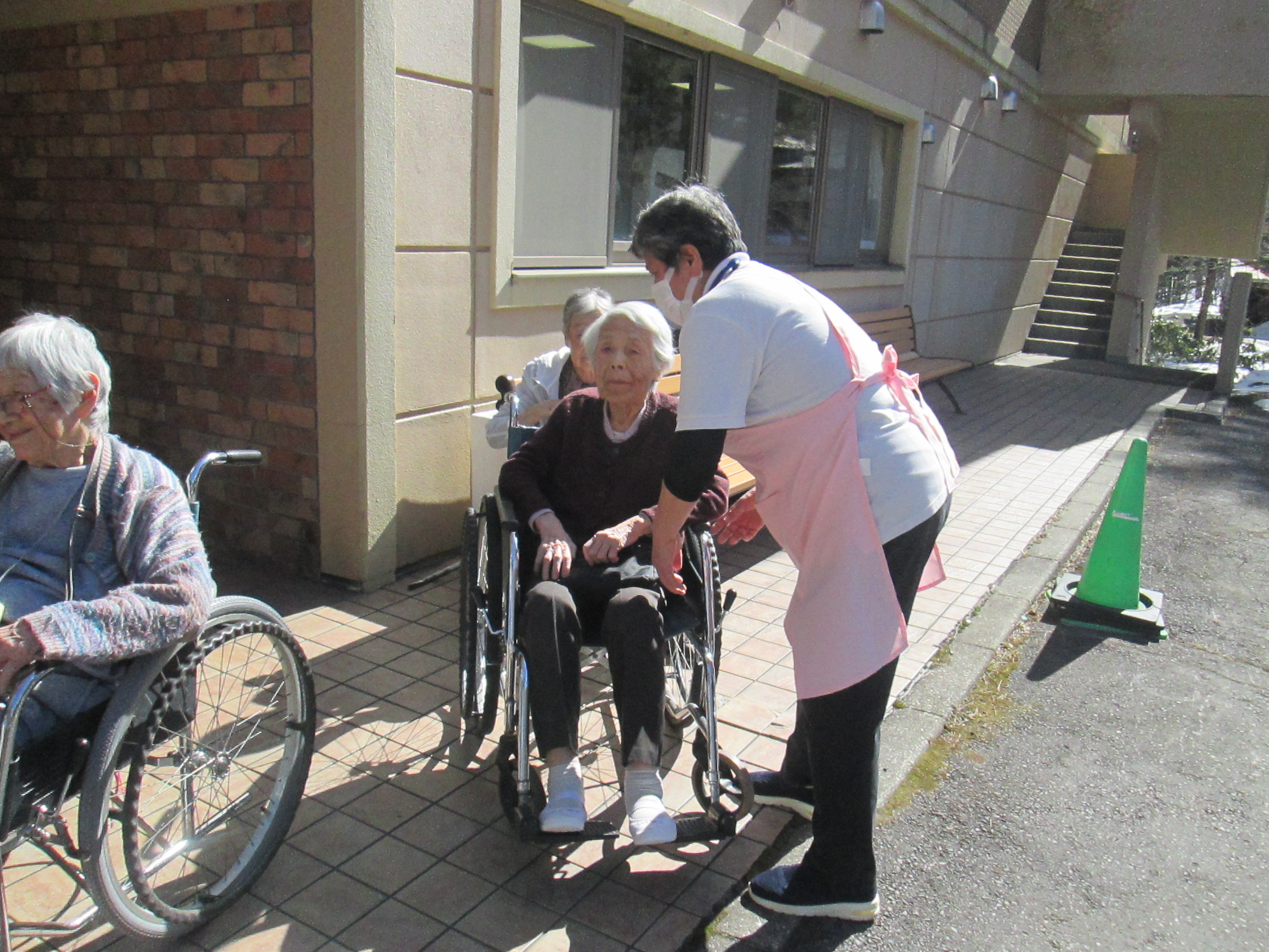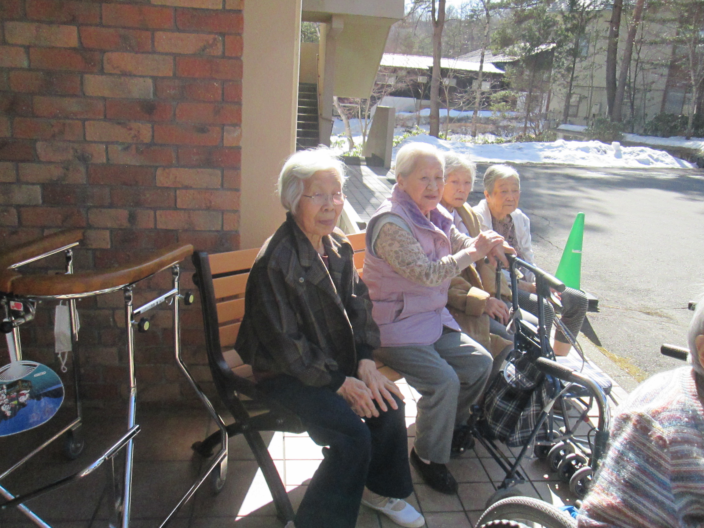 入居者の皆さんと日光浴をしながらじゃんけん遊びをしてみました(*’▽’)