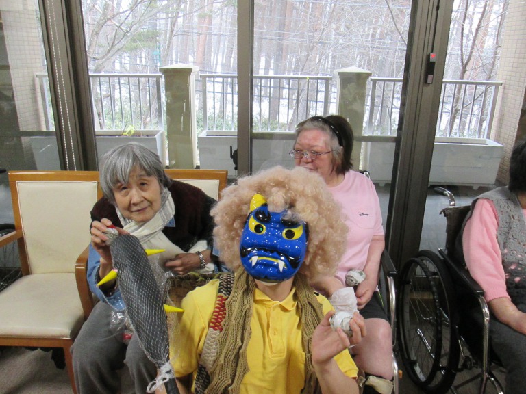 節分の豆まきレクの様子です。