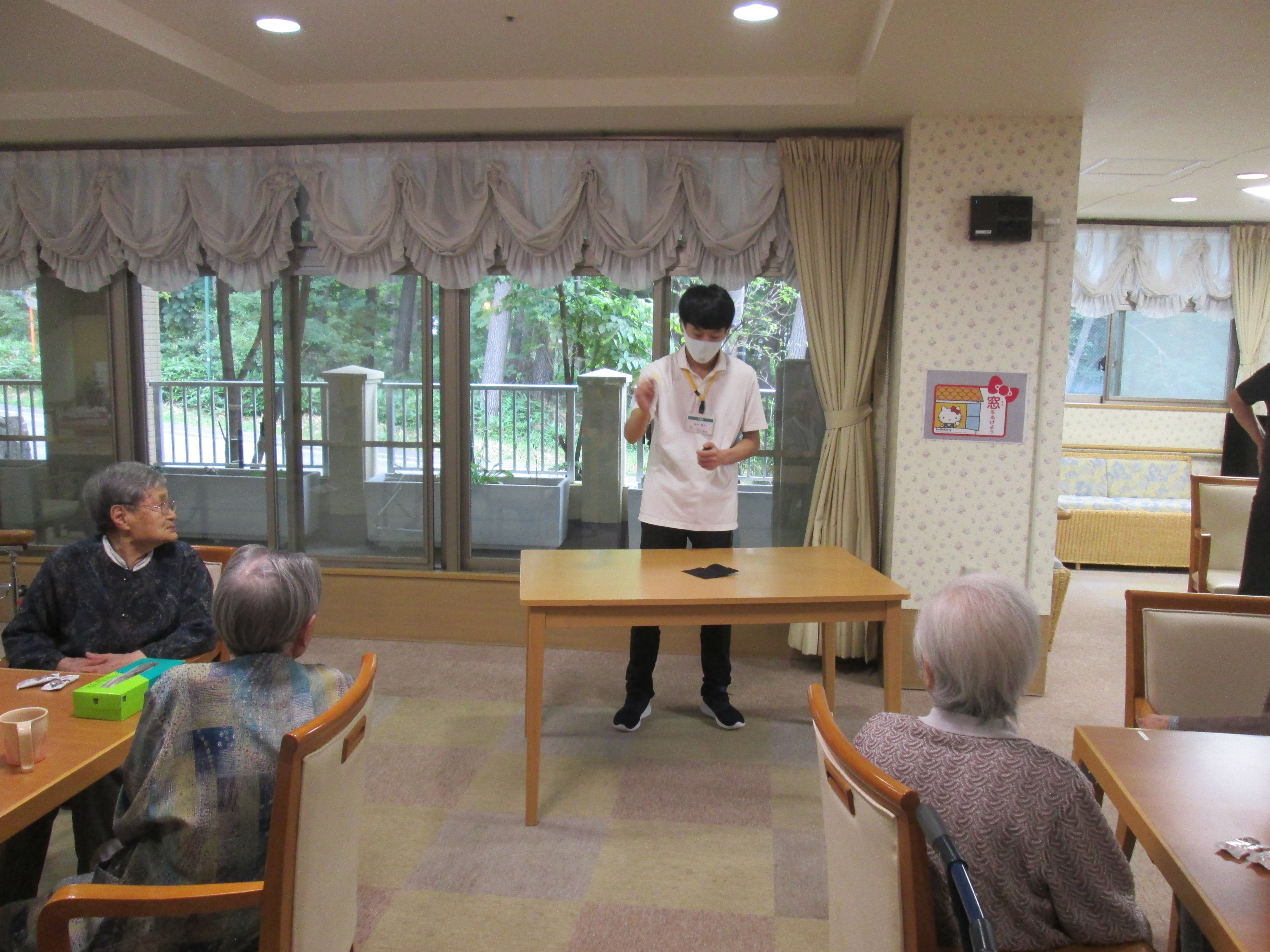 介護スタッフの堀田です(^^♪雨がよく続きますね、でもそんな時は元気に勉強会!今日も一生懸命楽しく頭を使いましょうね~